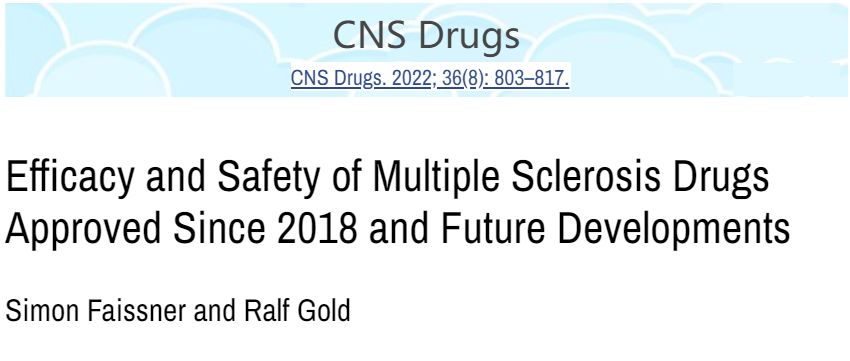 1.Faissner S, et al. Efficacy and Safety of Multiple Sclerosis Drugs Approved Since 2018 and Future Developments. CNS Drugs. 2022 Aug;36(8)