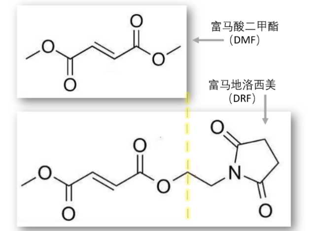 富马酸二甲酯(DMF)于2013年由美国FDA、2014年由欧洲EMA批准应用于MS的治疗,按ENDORSE研究所给出的长达13年的结果,其长期疗效佳。据渤健公司截止2021.12.31统计,DMF是覆盖MS患者最多的药物,涉及全球56万余例MS患者。DMF最主要的不良反应是短期性胃肠道不适,导致很多患者无法适用。新一代富马酸盐Diroximel Fumarate(DRF,富马地洛西美)是DMF的升级版,胃肠道安全性和耐受性更好;它在体内能够被迅速转化为富马酸单甲酯。富马酸单甲酯能够通过激活名为Nrf2的转录因子减少氧化应激产生的损伤。。除了DMF、DRF,富马酸单甲酯(MMF)也于2020.5在美国获批治疗复发型MS,这主要是基于DMF的关键研究及生物等效性研究。