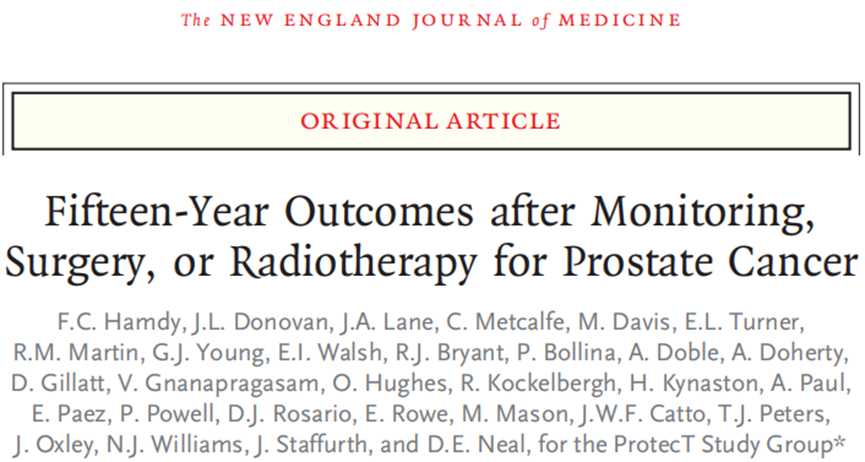[4]Freddie C. Hamdy et al, Fifteen-Year Outcomes after Monitoring, Surgery, or Radiotherapy for Prostate Cancer. NEJM.