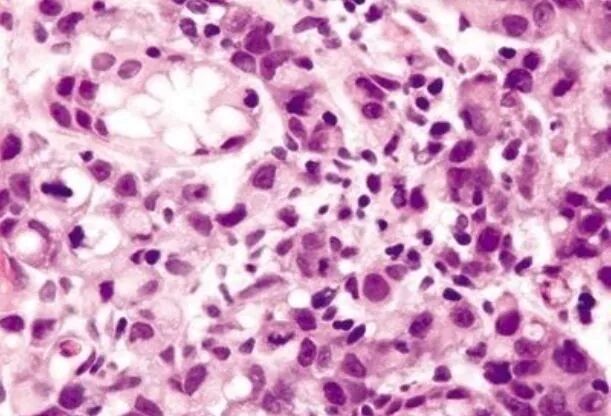 胃癌分为乳头状腺癌、管状腺癌、黏液腺癌、印戒细胞癌、腺鳞癌、鳞状细胞癌、未分化癌等。其中,印戒细胞癌是一种含有大量黏液的特殊胃癌类型,由于细胞中充满了黏液,把细胞核挤向了细胞的一侧,使其外形酷似一枚戒指,故得其名。