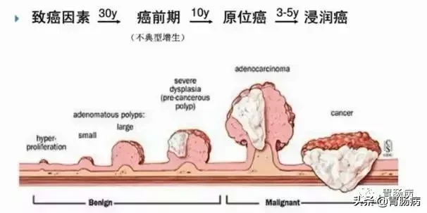 国内外大量研究表明,约80%~95%的结直肠癌是由结直肠息肉演变而来,一般经历这个过程: