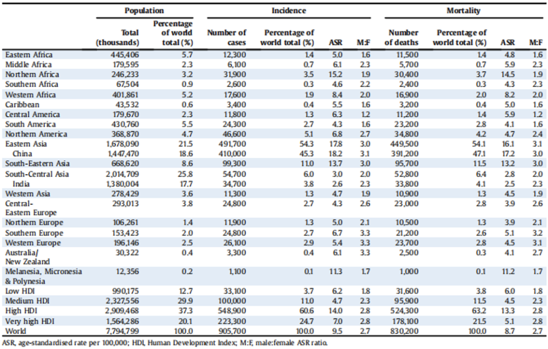 全世界超过一半的肝癌新发病例和死亡病例发生在东亚(分别为54.3%和54.1%),而中国作为肝癌大国占世界肝癌确诊病例的45.3%和肝癌死亡病例的47.1%。