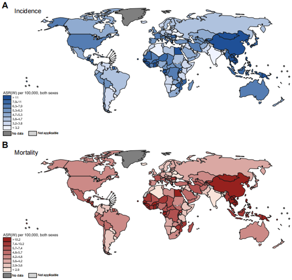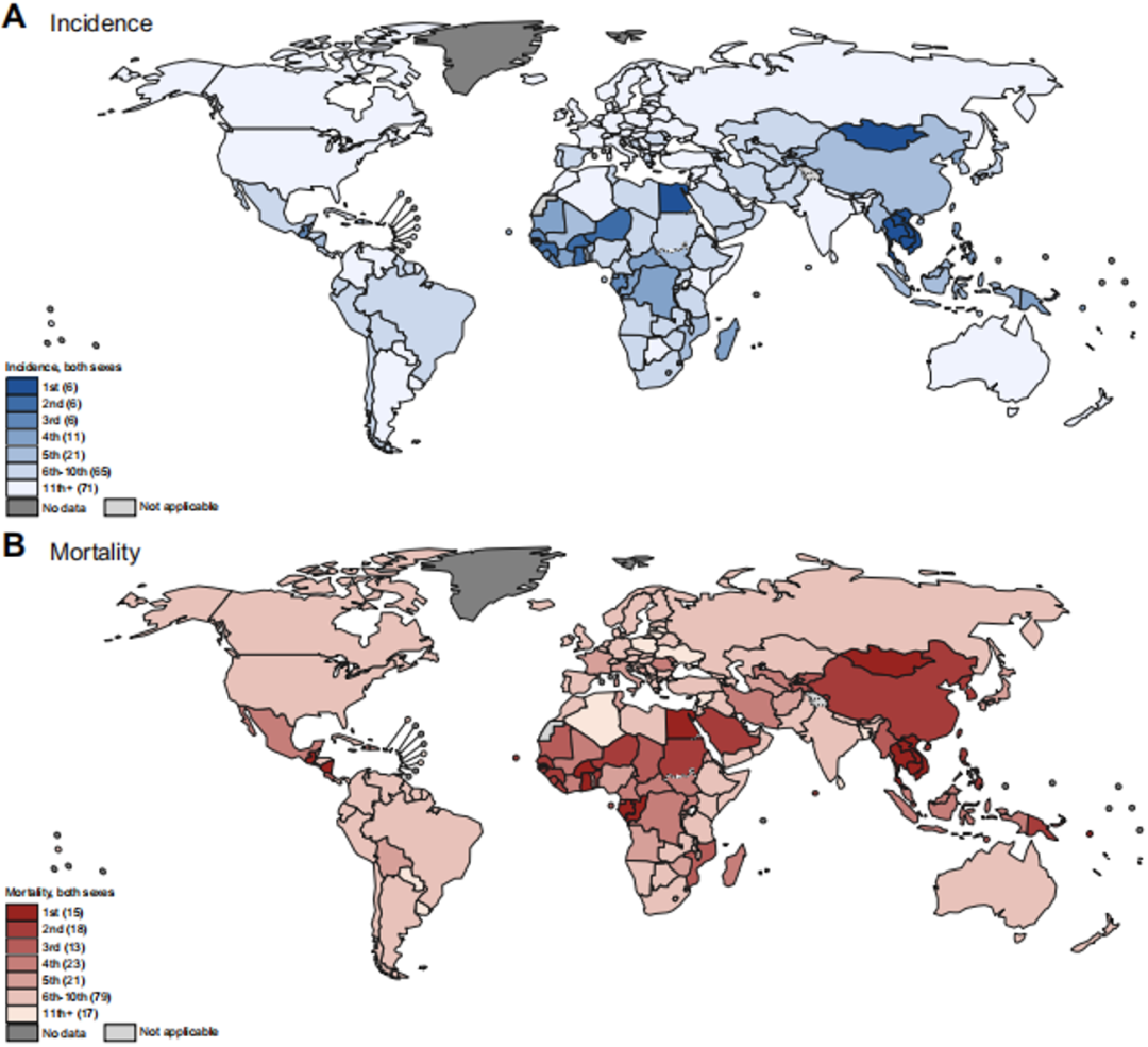 Harriet Rumgay等人的统计数据显示,肝癌是6个国家最常诊断的癌症,是18个国家最常诊断的三种癌症之一。就死亡率而言,肝癌是15个国家最常见的癌症死亡原因,是46个国家癌症死亡的前三大原因之一,是90个国家中癌症死亡的前五大原因之一。