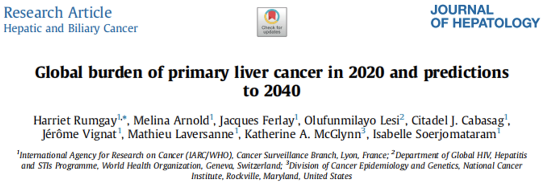 近日,世界卫生组织下属的国际癌症研究机构(IARC/WHO)的Harriet Rumgay等人在Journal of Hepatology发表了最新研究成果。