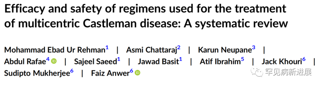 【综述荟萃】多中心Castleman病药物疗效与安全:基于临床证据的系统综述